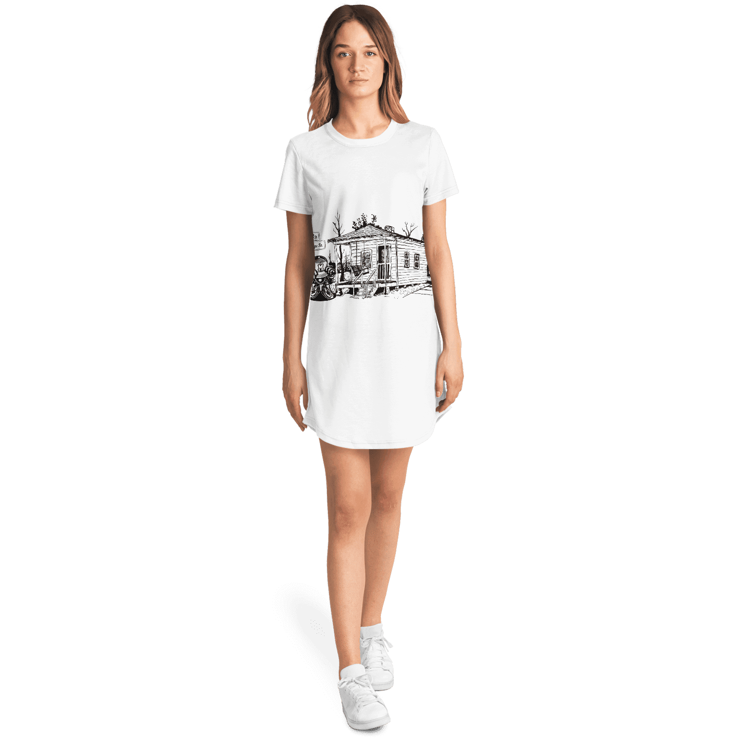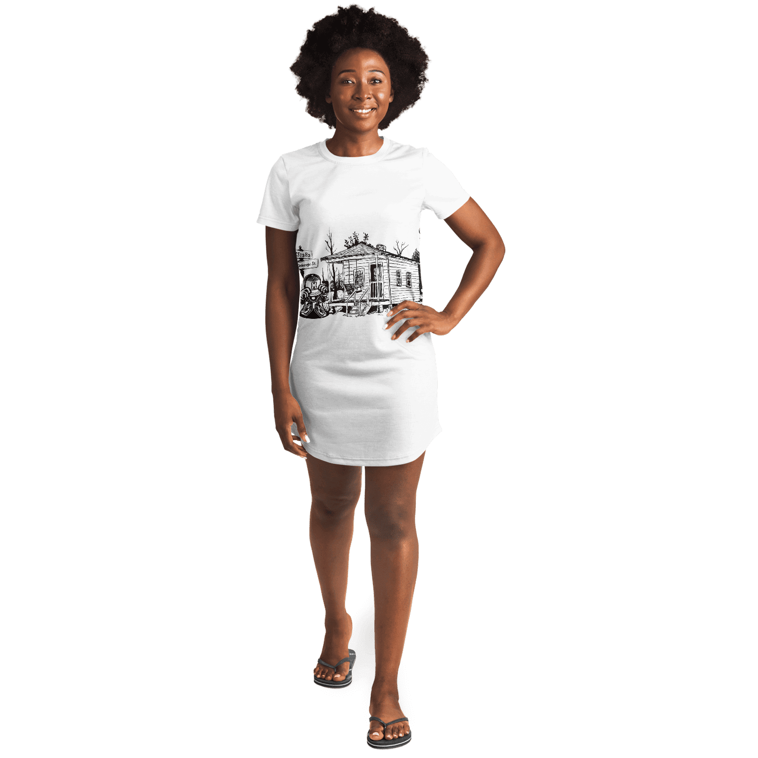 Meet Da Strat — the t-shirt dress that don’t miss. From the cotton fields to the concrete, this dress is cut for Queens who move like strategy is survival. It’s soft like a hug, bold like your mama’s advice, and sharp enough to wear from front porch hangs to late-night city lights. Brings classic Southern energy with modern streetwear edge — loud enough to speak, smooth enough to float.